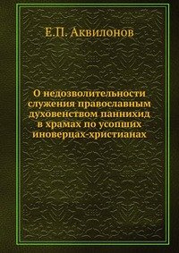 | Полное название книги | Е. П. Аквилонов О недозволительности служения православным духовенством паннихид в храмах по усопших иноверцах-христианах |