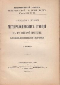 | Полное название книги | Р. Бергман О распределении и деятельности метеорологических станций в российской империи с начала их возникновения до 1889 г включительно |
