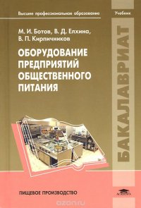 | Полное название книги | В. Д. Елхина, М. И. Ботов, В. П. Кирпичников Оборудование предприятий общественного питания. Учебник |