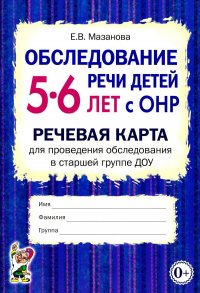 | Полное название книги | Е. В. Мазанова Обследование речи детей 5-6 лет с ОНР. Речевая карта для проведения обследования в старшей группе ДОУ |