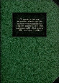 | Полное название книги | Коллектив авторов Обзор деятельности ведомства Министерства народного просвещения за время царствования имп. Александра III (Со 2 марта 1881 г. по 20 окт. 1894 г.) |