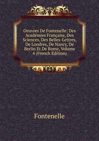 | Полное название книги | Fontenelle Oeuvres De Fontenelle: Des Academies Francaise, Des Sciences, Des Belles-Lettres, De Londres, De Nancy, De Berlin Et De Rome, Volume 4 (French Edition) |
