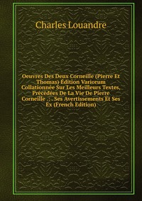 | Полное название книги | Charles Louandre Oeuvres Des Deux Corneille (Pierre Et Thomas) Edition Variorum Collationnee Sur Les Meilleurs Textes, Precedees De La Vie De Pierre Corneille .: . Ses Avertissements Et Ses Ex (French Edition |