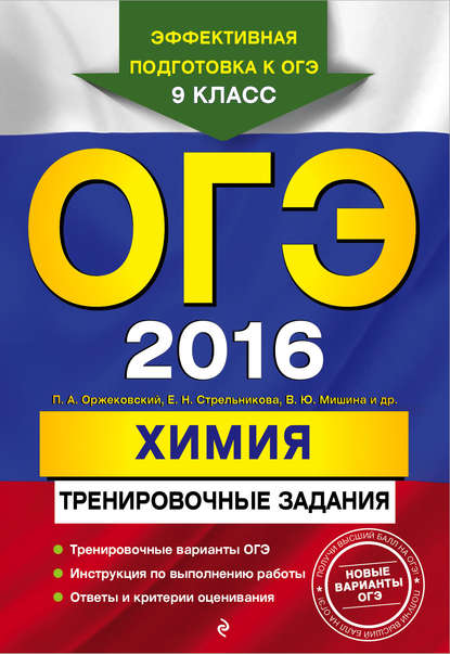 | Полное название книги | Людмила Ивановна Пашкова, Павел Александрович Оржековский, Вера Юльевна Мишина, Елена Николаевна Стрельникова, Александр Викторович Романенков ОГЭ 2016. Химия. Тренировочные задания |