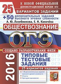 | Полное название книги | А. Ю. Лабезникова, Е. Н. Калачева ОГЭ 2016. Обществознание. 9 класс. 25 вариантов типовых тестовых заданий и дополнительные задания высокого уровня сложности |