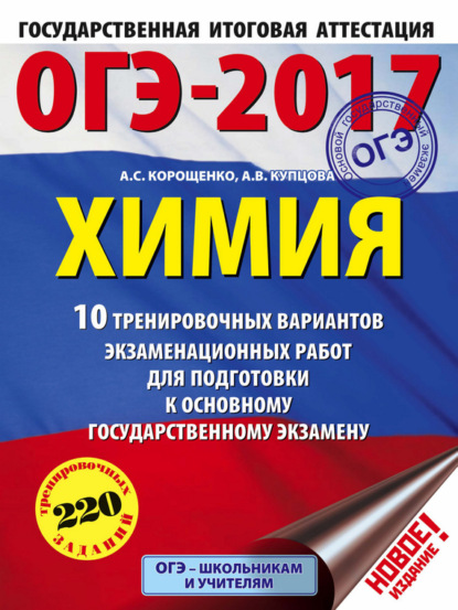 | Полное название книги | Антонина Степановна Корощенко, Анна Викторовна Купцова ОГЭ-2017. Химия. 10 тренировочных вариантов экзаменационных работ для подготовки к основному государственному экзамену |