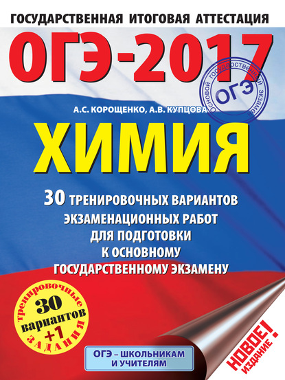 | Полное название книги | Антонина Степановна Корощенко, Анна Викторовна Купцова ОГЭ-2017. Химия. 30 тренировочных вариантов экзаменационных работ для подготовки к основному государственному экзамену |