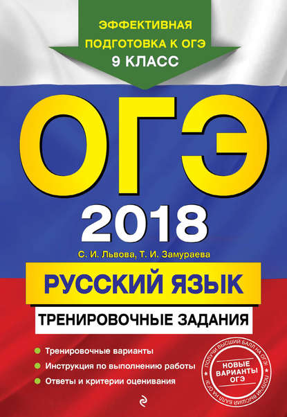 | Полное название книги | Светлана Ивановна Львова, Татьяна Ивановна Замураева ОГЭ 2018. Русский язык. Тренировочные задания |
