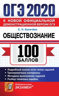 | Полное название книги | Е. Н. Калачева ОГЭ 2020. Обществознание. 100 баллов |
