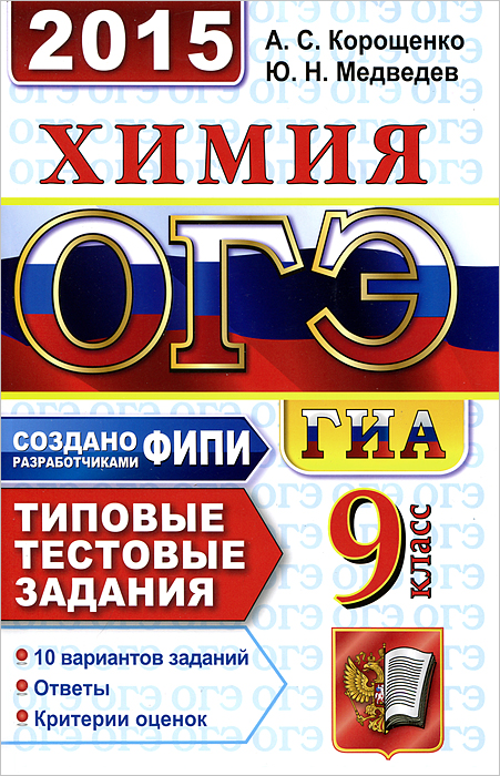 | Полное название книги | Ю. Н. Медведев, А. С. Корощенко ОГЭ (ГИА-9) 2015. Химия. 9 класс. Основной государственный экзамен. Типовые тестовые задания |