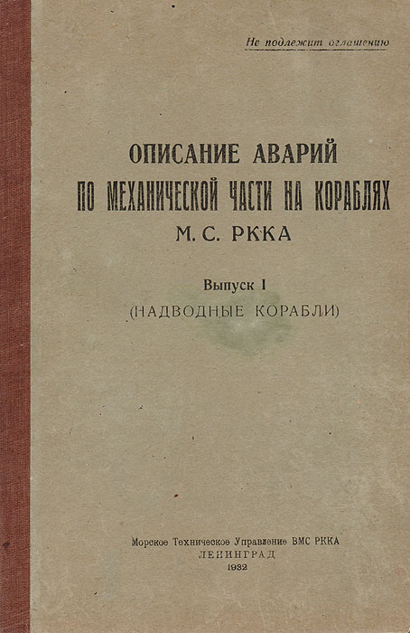 | Полное название книги | Описание аварий по механической части на кораблях М. С. РККА. Выпуск 1 (надводные корабли) |