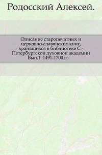 | Полное название книги | Андрей Родосский Описание старопечатных и церковно-славянских книг, хранящихся в библиотеке С.-Петербургской духовной академии |