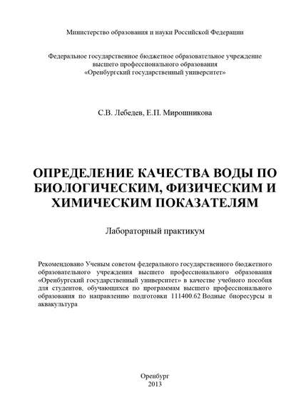 | Полное название книги | С. В. Лебедев, Елена Петровна Мирошникова Определение качества воды по биологическим, физическим и химическим показателям |