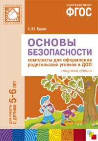 | Полное название книги | К. Ю. Белая Основы безопасности. Комплекты для оформления родительских уголков в ДОО. Старшая группа. Для работы с детьми 5-6 лет |