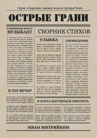 Если Вас стала раздражать слезливо-фальшивая лирика, тогда этот сборник для Вас. В нем собраны самые многообразные работы из разных периодов моего творчества. Из-за этого получилось нечто хаотичное и не подающееся осмыслению с первого раза. Сборник с острыми и часто меняющимися гранями. При подборе работ ставилась цель – разнообразие и многоуровневость. Но, к счастью, ничего из этого не получилось. Какие цели? Какие задачи? Мы же не на лекции по физике. Это же стихотворение, а стихотворение – это конечный результат осмысления жизни. Результат, а не цель. Так что, дорогой мой читатель, если тебе попал в руки этот сборник, прочти его, отложи и через некоторое время вернись и прочти еще раз. Прими исповедь нашего общества. Оцени иронию нашего времени. И просто улыбнись. Я же старался. Это и многое другое вы найдете в книге Острые грани (Иван Митряйкин)