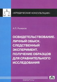 | Полное название книги | А. П. Рыжаков Освидетельствование. Личный обыск. Следственный эксперимет. Получение образцов для сравнительного исследлования |