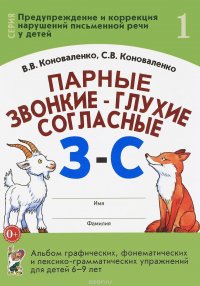 | Полное название книги | С. В. Коноваленко, В. В. Коноваленко Парные звонкие - глухие согласные З - С. Альбом графических, фонематических и лексико-грамматических упражнений для детей 6-9 лет |