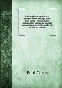 | Полное название книги | Paul Carus Philosophy as a science: a synopsis of the writings of Dr. Paul Carus : containing an introduction written by himself, summaries of his books, and a list of articles to date |
