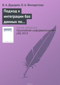 | Полное название книги | Дударев В. А., Филоретова О. А. Подход к интеграции баз данных по свойствам неорганических веществ на основе метабазы |