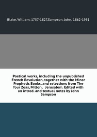 | Полное название книги | William Blake Poetical works, including the unpublished French Revolution, together with the Minor Prophetic Books, and selections from The four Zoas, Milton, & Jerusalem. Edited with an introd. and te |