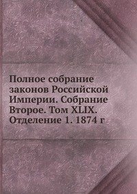 | Полное название книги | Коллектив авторов Полное собрание законов Российской Империи. Собрание Второе. Том XLIX. Отделение 1. 1874 г |