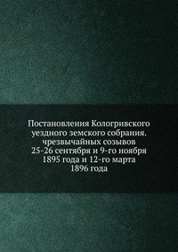 | Полное название книги | Коллектив авторов Постановления Кологривского уездного земского собрания. чрезвычайных созывов 25-26 сентября и 9-го ноября 1895 года и 12-го марта 1896 года |