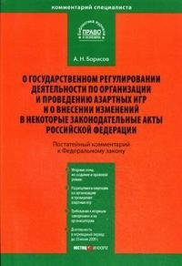 | Полное название книги | А. Н. Борисов Постатейный комментарий к Федеральному закону "О государственном регулировании деятельности по организации и проведению азартных игр и о внесении изменений в некоторые законодательные ак |