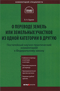 | Полное название книги | В. А. Буров Постатейный научно-практический комментарий к Федеральному закону "О переводе земель или земельных участков из одной категории в другую" |