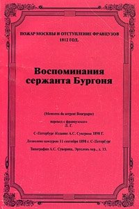 | Полное название книги | Пожар Москвы и отступление французов. 1812 год. Воспоминания сержанта Бургоня |