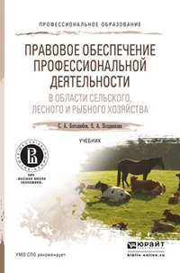 | Полное название книги | Е. А. Позднякова, С. А. Боголюбов Правовое обеспечение профессиональной деятельности в области сельского, лесного и рыбного хозяйства. Учебник |