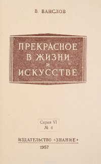 | Полное название книги | В. Ванслов Прекрасное в жизни и искусстве |