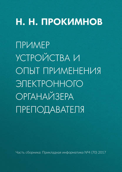 | Полное название книги | Николай Николаевич Прокимнов Пример устройства и опыт применения электронного органайзера преподавателя |