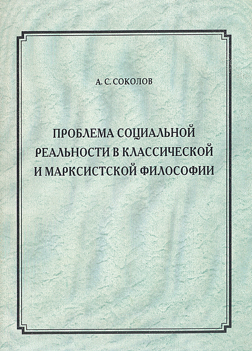 | Полное название книги | А. С. Соколов Проблема социальной реальности в классической и марксистской философии |