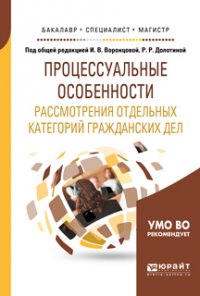 | Полное название книги | Ирина Викторовна Воронцова Процессуальные особенности рассмотрения отдельных категорий гражданских дел. Учебное пособие для бакалавриата, специалитета и магистратуры |