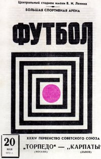 | Полное название книги | Нет автора Программа футбол XXXIV Первенство Советского Союза "Торпедо" (Москва) - "Карпаты" (Львов) 20 мая 1972 |