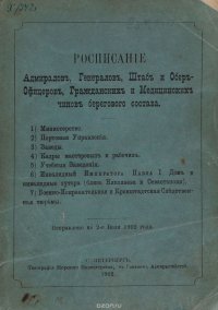 | Полное название книги | Расписание Адмиралов, Генералов, Штаб и Обер-Офицеров, Гражданских и Медицинских чинов берегового состава |