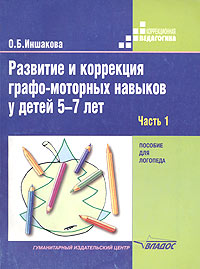 | Полное название книги | О. Б. Иншакова Развитие и коррекция графо-моторных навыков у детей 5-7 лет. Пособие для логопеда. Часть 1. Формирование зрительно-предметного гнозиса и зрительно-моторной координации |
