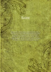 Книга "Regola di S. Benedetto colle dichiarzioni, e constituzioni de' padri della Congregazione casinese, coll'aggiunta di alcune bolle pontificie pel buon governo della stessa congregazione de' decreti del sagro Concilio di Trento, e di altre bolle appartenenti".Эта книга — репринт оригинального издания (издательство "Mantova : Stamperìa di S. Benedetto, Per A. Pazzoni", 1723 год), созданный на основе электронной копии высокого разрешения, которую очистили и обработали вручную, сохранив структуру и орфографию оригинального издания. Редкие, забытые и малоизвестные книги, изданные с петровских времен до наших дней, вновь доступны в виде печатных книг. Это и многое другое вы найдете в книге Regola di S. Benedetto colle dichiarzioni, e constituzioni de' padri della Congregazione casinese, coll'aggiunta di alcune bolle pontificie pel buon governo della stessa congregazio (Saint)
