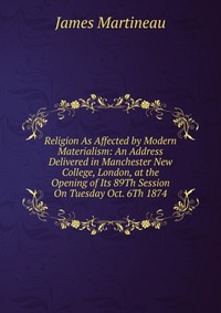 | Полное название книги | James Martineau Religion As Affected by Modern Materialism: An Address Delivered in Manchester New College, London, at the Opening of Its 89Th Session On Tuesday Oct. 6Th 1874 |