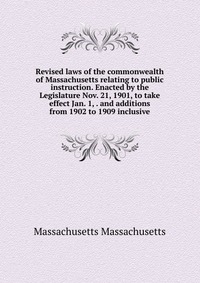 | Полное название книги | Massachusetts Massachusetts Revised laws of the commonwealth of Massachusetts relating to public instruction. Enacted by the Legislature Nov. 21, 1901, to take effect Jan. 1, . and additions from 1902 to 1909 inclusive |