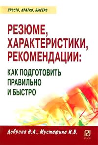 | Полное название книги | Н. А. Добрина, И. В. Мустафина Резюме, характеристики, рекомендации. Как подготовить правильно и быстро |