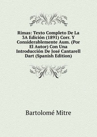 | Полное название книги | Bartolome Mitre Rimas: Texto Completo De La 3A Edicion (1891) Corr. Y Considerablemente Aum. (Por El Autor) Con Una Introduccion De Jose Cantarell Dart (Spanish Edition) |