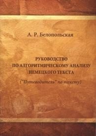 | Полное название книги | А. Р. Белопольская Руководство по алгоритмическому анализу немецкого языка ("Путеводитель" по тексту). Учебное пособие |