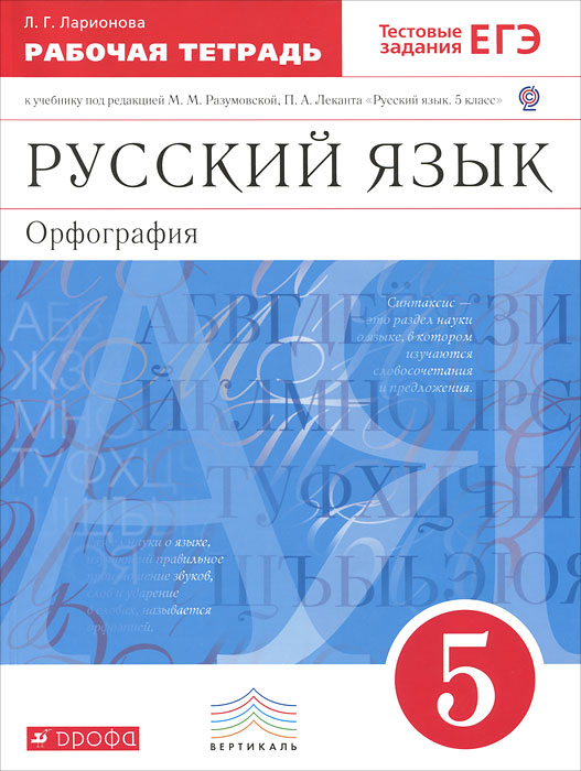 | Полное название книги | Л. Г. Ларионова Русский язык. 5 класс. Орфография. Рабочая тетрадь |