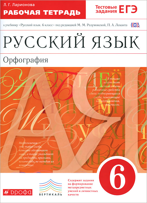 | Полное название книги | Л. Г. Ларионова Русский язык. 6 класс. Рабочая тетрадь |
