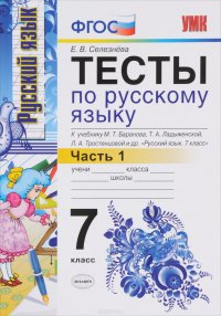 | Полное название книги | Е. В. Селезнева Русский язык. 7 класс. Тесты. Часть 1. К учебнику М. Т. Баранова, Т. А. Ладыженской, Л. А. Тростенцовой и др |