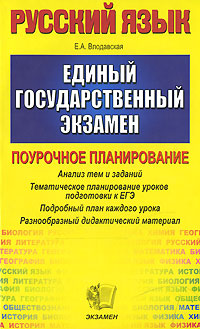 | Полное название книги | Е. А. Влодавская Русский язык. Поурочное планирование. Единый государственный экзамен |