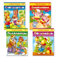 В книги серии «Говорушки» вошли весёлые детские стихи с движениями, которые помогут малышу развить речь, внимание и память, а наряду с этим и мелкую моторику руки. Также они помогут открыть ребёнку мир звуков окружающих его предметов и явлений. Это и многое другое вы найдете в книге Считалочки,скороговорки, пословицы, поговорки для детей 3-6 лет. 4 книги в комплекте (Юлия Винклер)