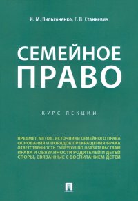 | Полное название книги | Ирина Михайловна Вильгоненко, Галина Викторовна Станкевич Семейное право. Курс лекций |