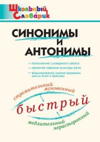 Словарь синонимов и'nbsp;антонимов содержит более 2000 синонимических рядов и'nbsp;около 900 антонимических пар, включая наиболее употребительные слова русского литературного языка и'nbsp;разговорной речи, а'nbsp;также некоторые устаревшие слова, встречающиеся в'nbsp;художественных произведениях, изучаемых по'nbsp;программе литературного чтения в'nbsp;начальной школе. К'nbsp;каждому из'nbsp;значений многозначных слов приводится свой синонимический ряд. Словарные статьи проиллюстрированы примерами. Издание предназначено для учащихся начальной школы. Это и многое другое вы найдете в книге Синонимы и антонимы (Клюхина И.В.,сост.)